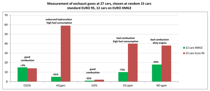 XMILE has been scientifically tested and demonstrably contributes to the reduction of particulate matter, CO and NOx. XMILE is certified as a 7% CO2 reducer and has the predicate 'Lean & Green Tool' .